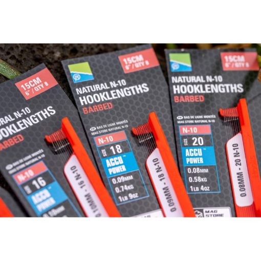 Les hameçons N10 sont montées avec notre nylon ACCU POWER afin de créer des bas de ligne précis et durable, utilisables avec de nombreuses esches..